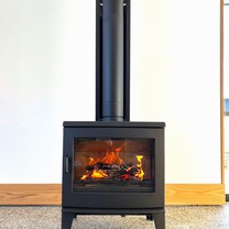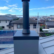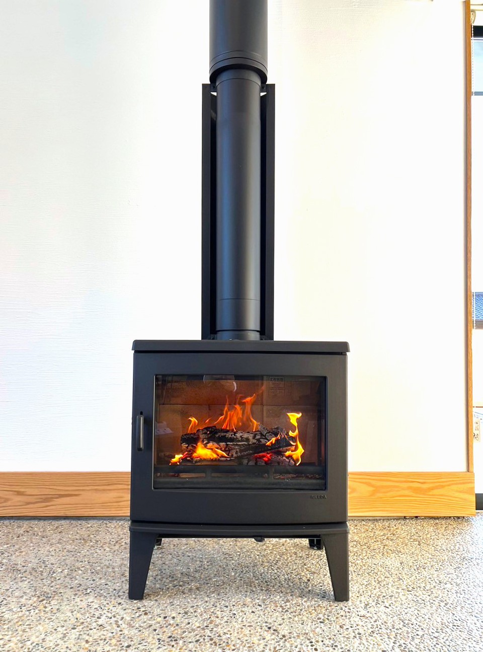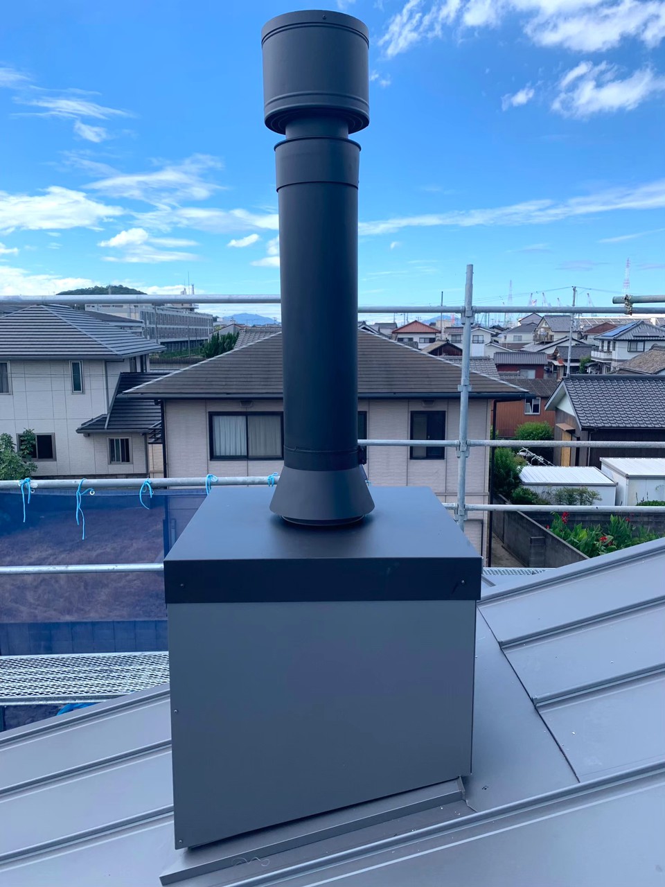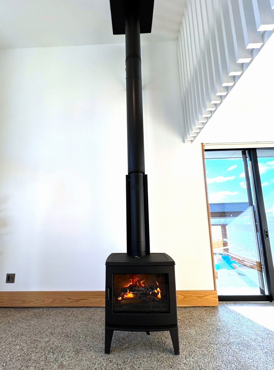 香川県 仲多度郡 K様 種別 薪ストーブ 機種 レダ アレグラ500 煙突 断熱二重煙突+シングル煙突 屋根だし 設置のきかっけ 新築時 設計士・工務店 黒渕忍設計事務所様 施工内容 土間玄関への設置。薪導線が非常に良いです。